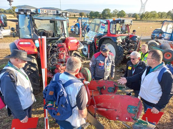 Während Stefan und Poldi die letzte inoffizielle Stoppelparzelle pflügten organisierten Harald und Josef den Transport der Kisten voll mit Materialien von der Firma Meredith zum Marshalling Yard. Dabei bekamen sie Unterstützung von Dave der ihnen beim Verladen und beim Transport tatkräftig unter die Arme griff. 15.00 Uhr – jetzt geht es los. Gewaschen und poliert wurden die Traktoren und Pflüge für die Weltmeisterschaft 2022 eingecheckt.